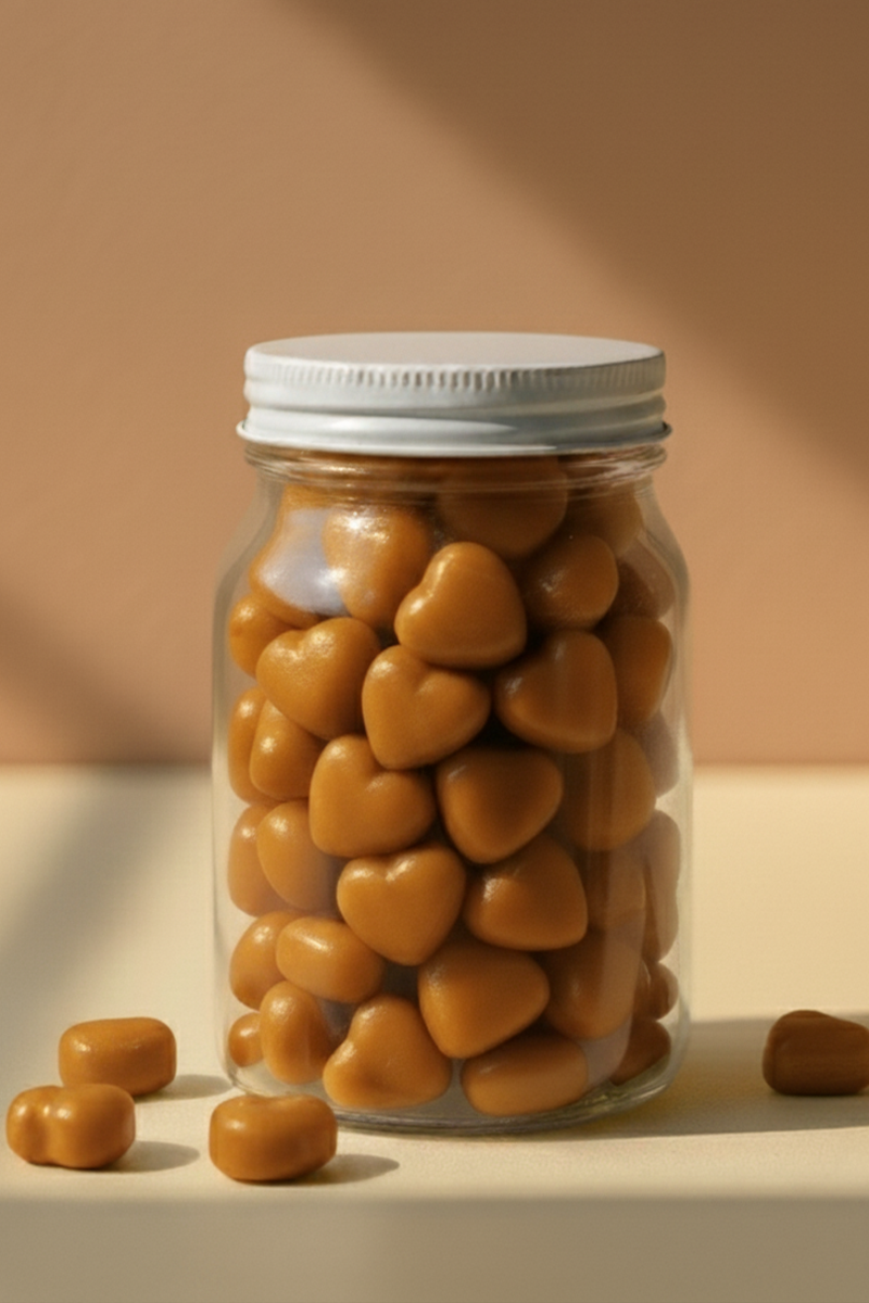 Sabor de caramelo suave, com aquele toque que abraça sem pesar