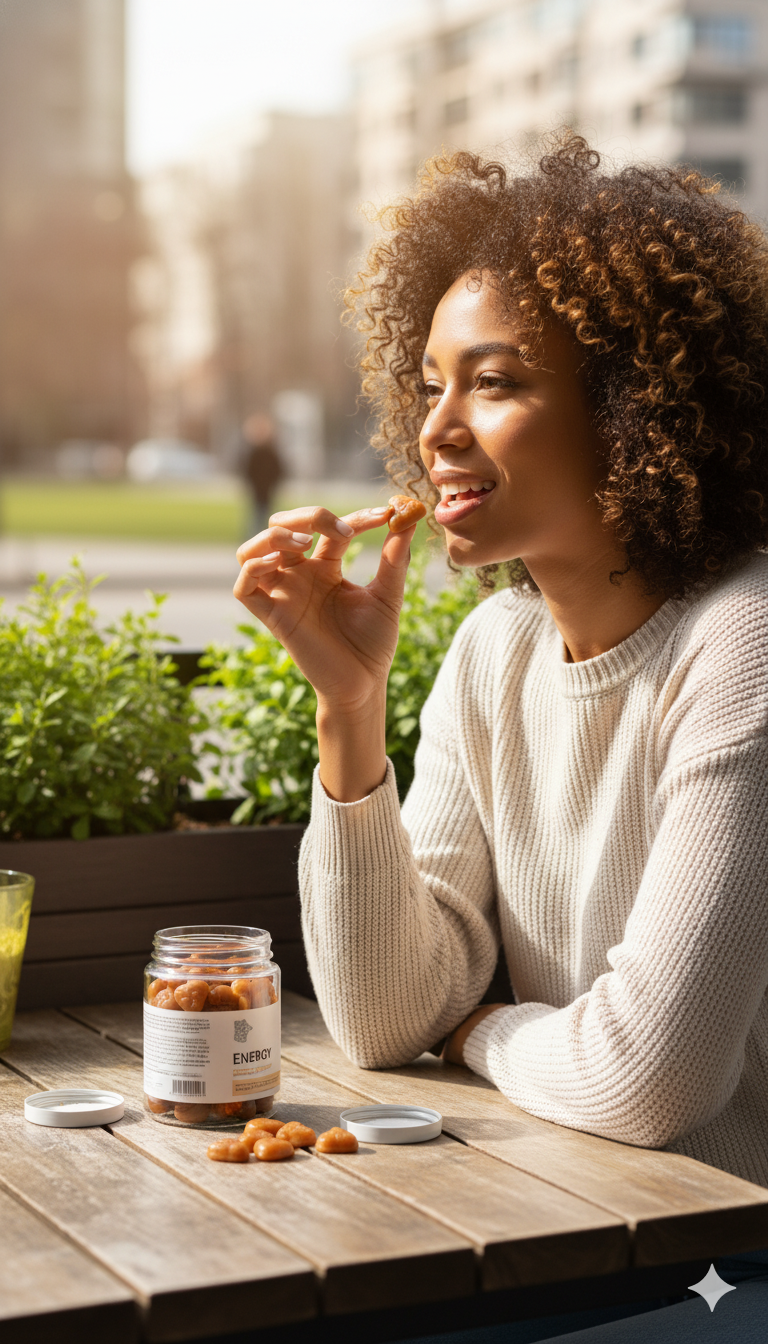 Sabor de caramelo suave, com aquele toque que abraça sem pesar